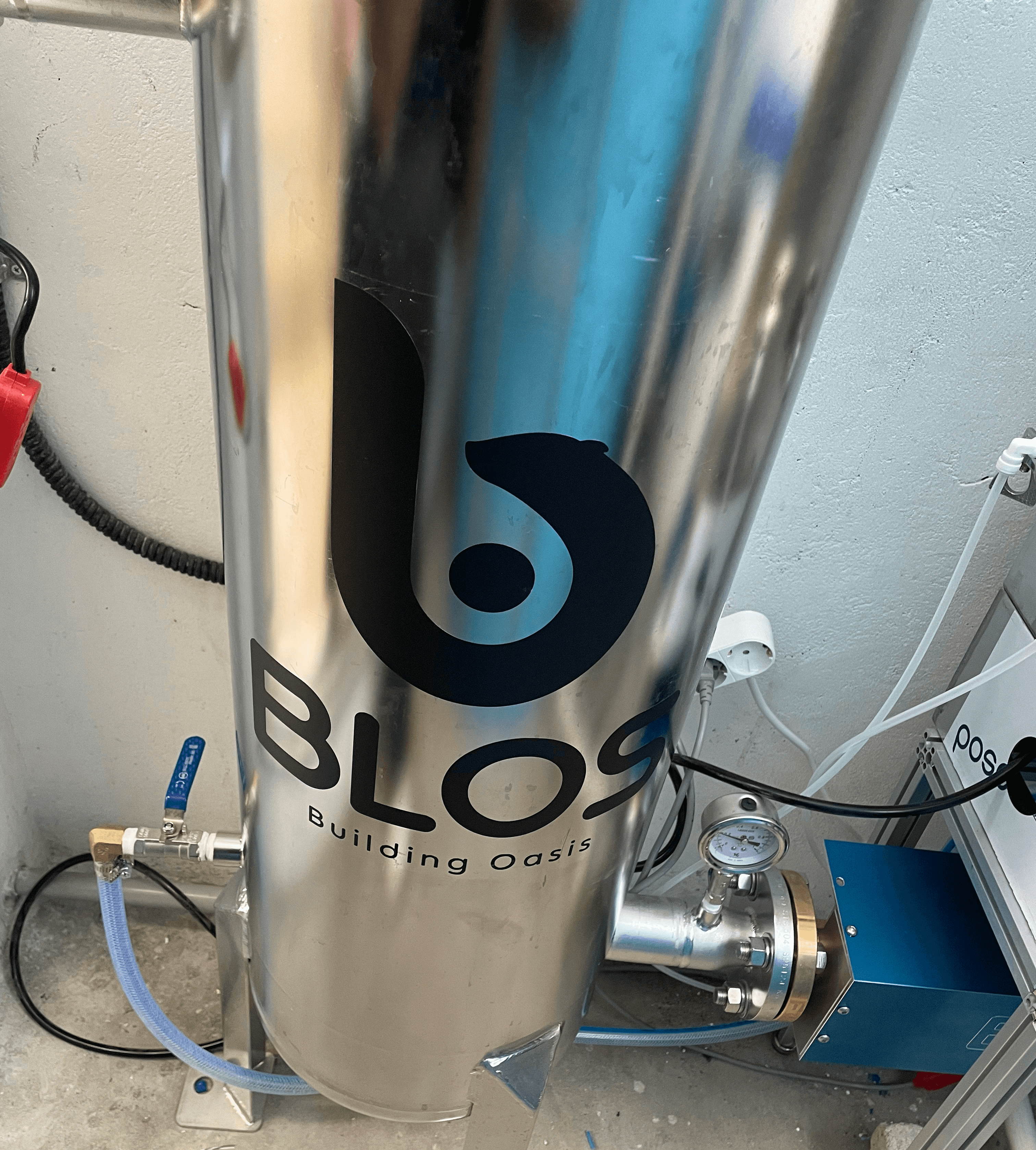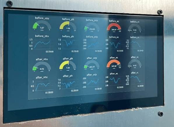 現場に設置されたステンレス製のBLOS本体は高い耐久性を誇り、学校建物全体の水質を中央で集中的に管理します。これに加えて、スマートモニタリングシステムが24時間水質データを収集し、万が一の異常発生時にも即座に対応できる安全体制を構築しています。