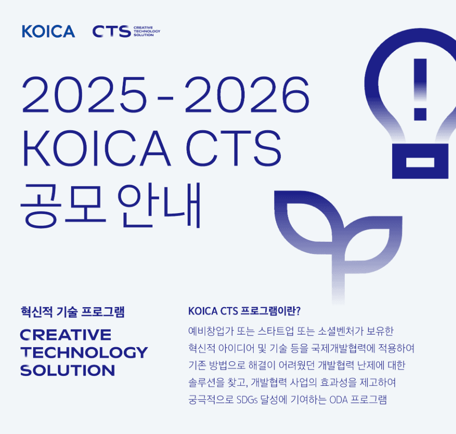 ジオグリッドは、韓国国際協力団(KOICA)が主管する「2025~2026 革新的技術プログラム(CTS・Creative Technology Solution)」に最終選定されました。本プログラムは、革新的技術を活用して開発途上国の社会・環境課題を解決し、持続可能な開発目標(SDGs)の達成に貢献することを目的としています。